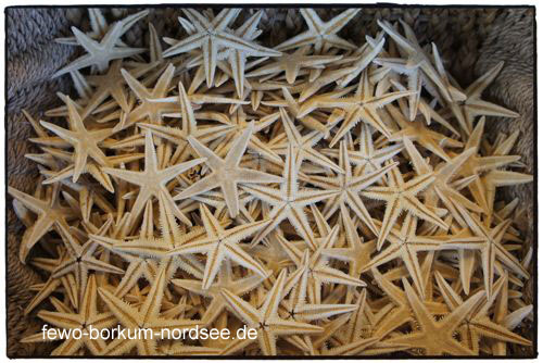 Sie sind selten geworden, die Seesterne. Als Kind kam es mir vor, als gäbe es sie zu Tausenden. Ich habe schon lange keinen mehr gefunden. Wäre es nicht schöner, die Seesterne selbst zu sammeln, als sie wie hier im Bild (das ich nicht auf Borkum gemacht habe) als Dekoartikel zu kaufen?
